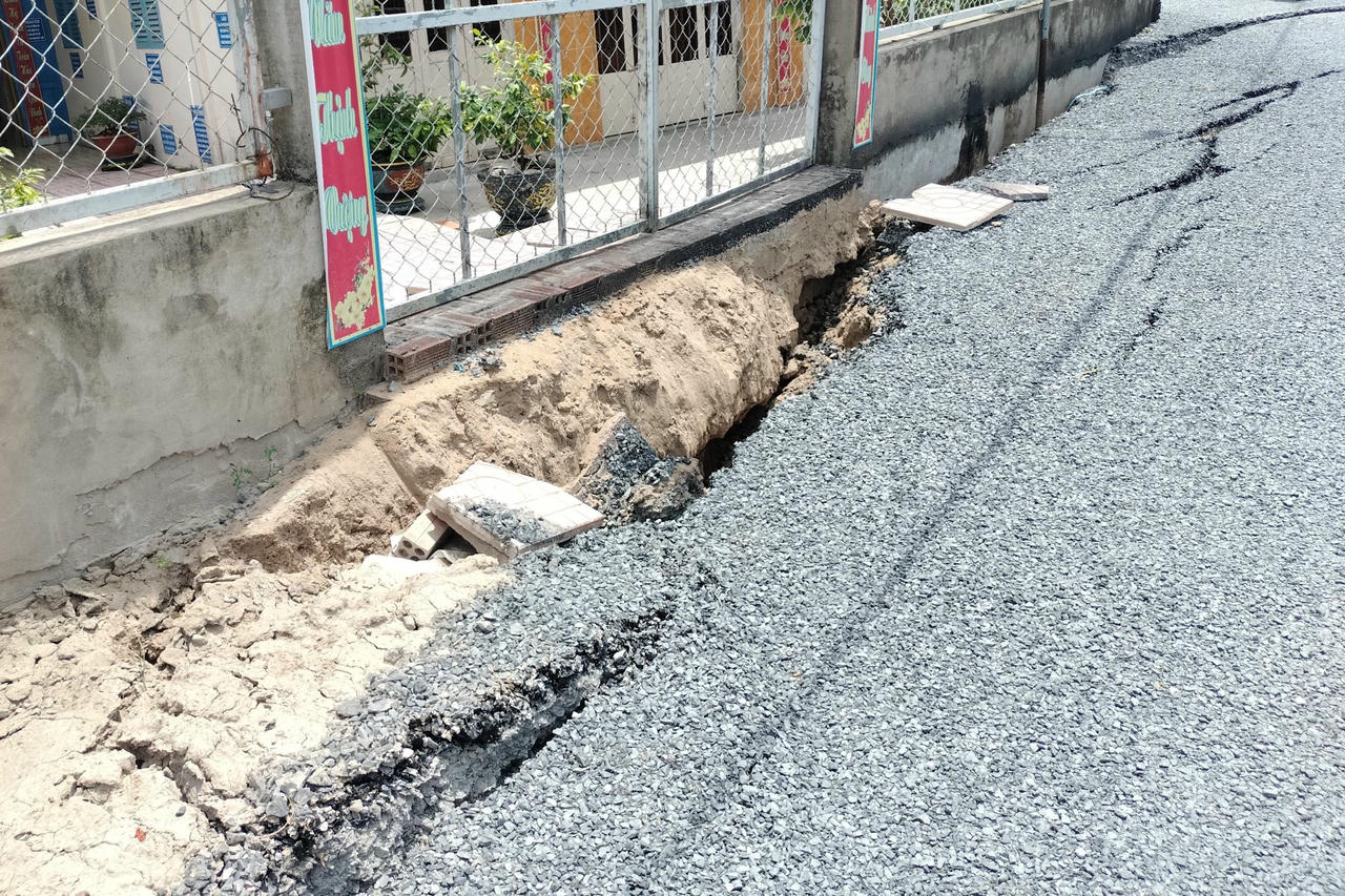 Dù có bờ kè bảo vệ nhưng vẫn xảy ra sụt lún. |
