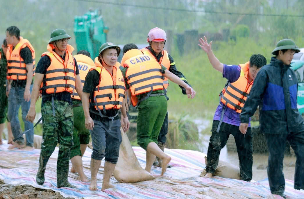 Lữ đoàn tăng thiết giáp 405 (Quân khu 3) đã cử cán bộ chiến sĩ (CBCS) tới hỗ trợ người dân đắp bao cát, tạo hành lang đê để ngăn lũ. Công an TX Đông Triều huy động trên 80 lượt CBCS nhanh chóng tập trung, khẩn trương cơ động xuống địa phương phối hợp các lực lượng và nhân dân trên địa bàn tiến hành các biện pháp để gia cố tuyến đê.