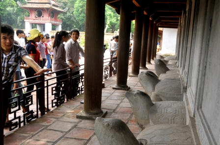 Chuẩn bị cho Kỳ thi ĐH năm nay, Trung tâm hoạt động văn hóa khoa học Văn Miếu-Quốc Tử Giám đặc biệt chú ý ngăn chặn các sỹ tử sờ đầu rùa, xoa bảng vàng khi vào Văn Miếu-Quốc Tử Giám cầu may nhằm bảo vệ di tích.
