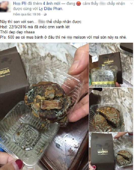 Ngày 12/9, trên trang cá nhân của facebooker H.P đã đăng tải những hình ảnh một chiếc bánh trung thu của hãng bánh Maison Des Gâteaux bị mốc xanh, cùng dòng status cảnh báo mọi người nếu mua bánh thì nên né nhãn hiệu này ra.