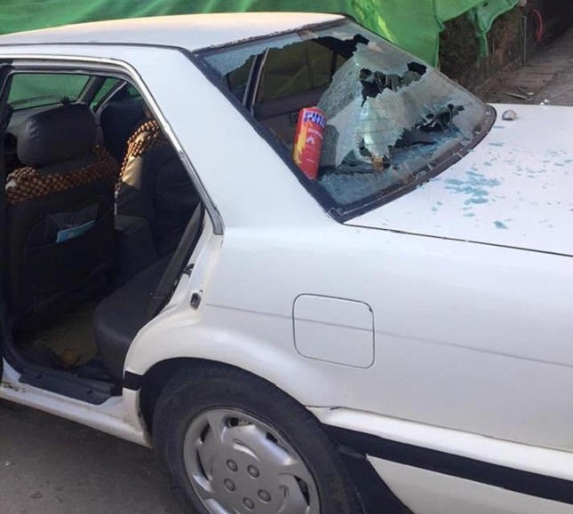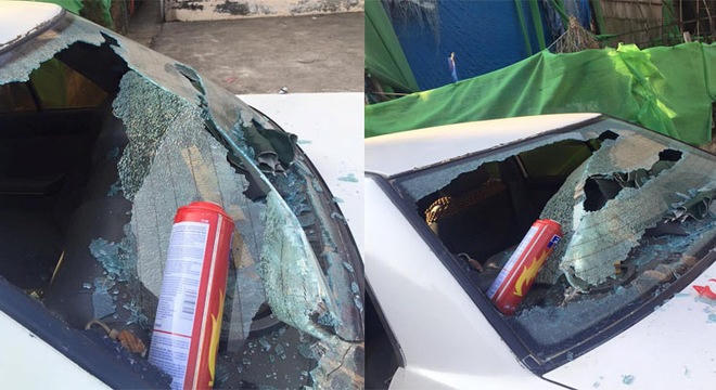 Đến khoảng 16h15, anh bỗng dưng nghe thấy một tiếng nổ lớn phát ra từ khu vực để xe của mình. Khi chạy ra, anh phát hiện chiếc bình cứu hỏa mini để ở khu vực hàng ghế sau phát nổ khiến toàn bộ kính vỡ vụn.