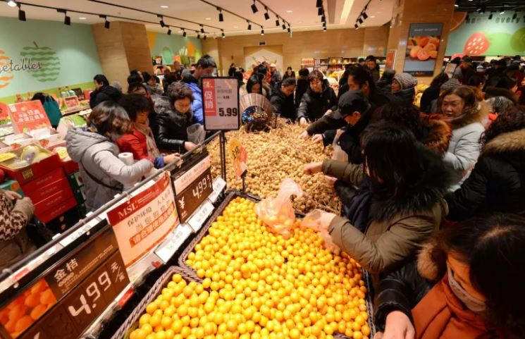 Khách hàng mua trái cây tại một siêu thị ở thành phố Hàm Đan, Trung Quốc. Ảnh: AFP