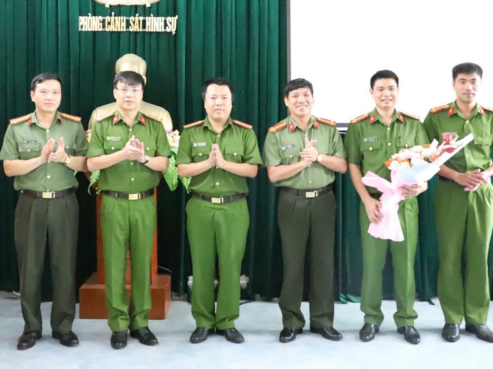 Ban Giám đốc Công an tỉnh chúc mừng Phòng CSHS lập chiến công phá được một số chuyên án lớn. |