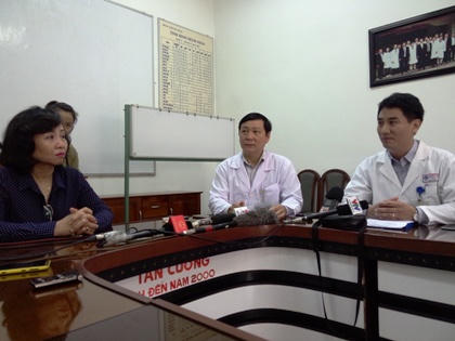 | Bà Ngô Thị Kim Yến, bác sĩ Trần Ngọc Thạnh và bác sĩ Lê Đức Nhân trao đổi với báo chí trưa ngày 18/3 |