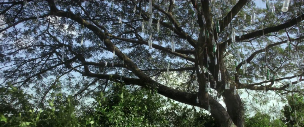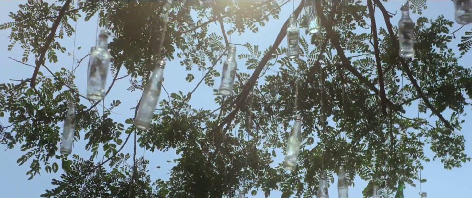 Mỗi lần gió thoảng qua là một lần hàng trăm chiếc chai va vào nhau lách cách tạo nên một khúc nhạc trong trẻo, vui tai và đầy ý nghĩa. Đó là khúc hòa nhạc của lá, cây, gió và những chiếc chai thân thiện với thiên nhiên.