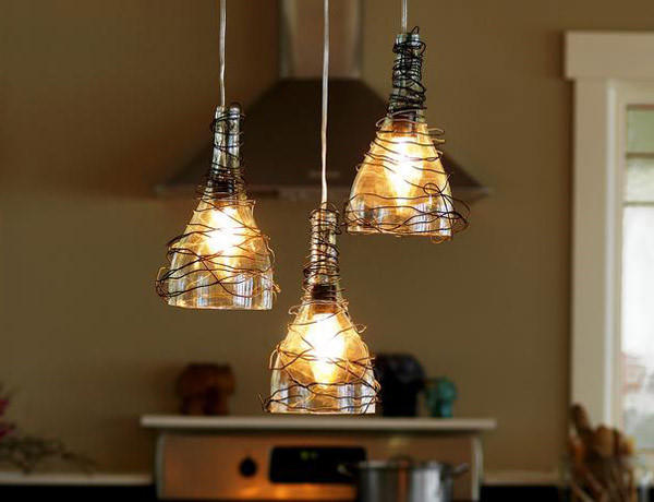 Các vỏ chai to với đường kính thân lớn có thể trở thành chiếc đui đèn ấn tượng cho căn phòng thêm ấm cúng,