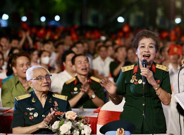 Đồng thời, khán giả cũng được thưởng thức các tiết mục biểu diễn nghệ thuật đặc sắc với những ca khúc, sáng tác sống mãi với thời gian, đi cùng năm tháng như Bác đang cùng chúng cháu hành quân (Huy Thục), Nam Bộ kháng chiến (Tạ Thanh Sơn), Người Hà Nội (Nguyễn Đình Thi), Bình Trị Thiên khói lửa (Nguyễn Văn Thương), Tây Nguyên bất khuất (Văn Ký), Qua miền Tây Bắc (Nguyễn Thành), Đường lên Tây Bắc, Hò kéo pháo (Hoàng Vân), Hoan hô chiến sĩ Điện Biên (Huy Thục)…