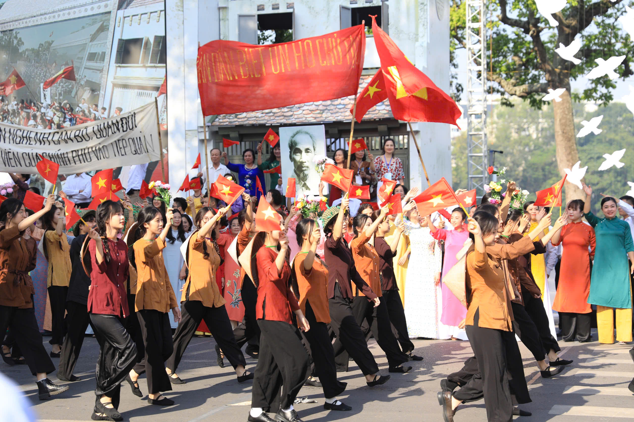 Đặc biệt là màn thực cảnh tái hiện thời khắc lịch sử trọng đại của Thủ đô và đất nước; ngày 10/10/1954, khi đoàn quân tiến về tiếp quản Thủ đô trong rợp trời cờ, hoa và niềm hân hoan chiến thắng; kết thúc 9 năm trường kỳ kháng chiến gian khổ, ác liệt với biết bao hy sinh, mất mát và tinh thần anh dũng, bất khuất của nhân dân ta trước một kẻ thù hùng mạnh; viết lên bản anh hùng ca trong sự nghiệp cách mạng của Đảng ta và dân tộc ta.