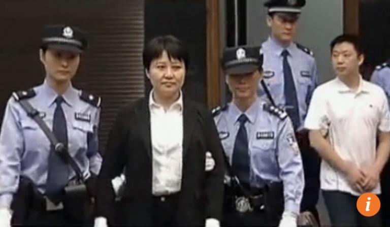 | Bà Cốc Khai Lai (áo khoác đen) bị tuyên án tử hình treo, còn ông Trương (áo trắng) bị nhận 9 năm tù trong phiên tòa năm 2012 |