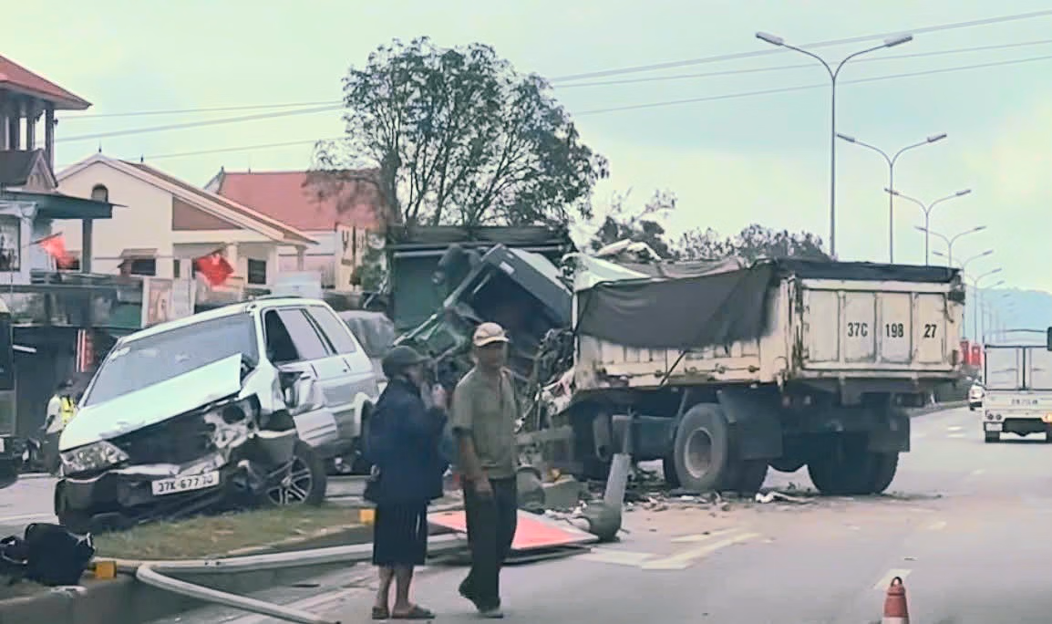 Vụ tai nạn giao thông liên hoàn trên Quốc lộ 1A đoạn qua tỉnh Nghệ An giữa hai xe tải và xe 7 chỗ khiến một tài xế tử vong tại chỗ, hai người khác bị thương.