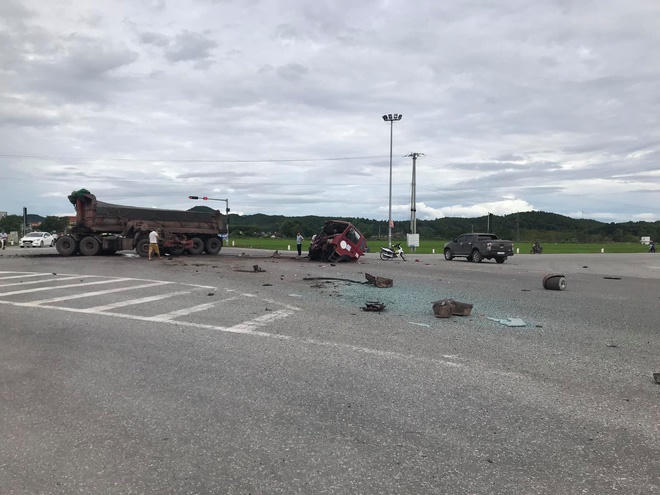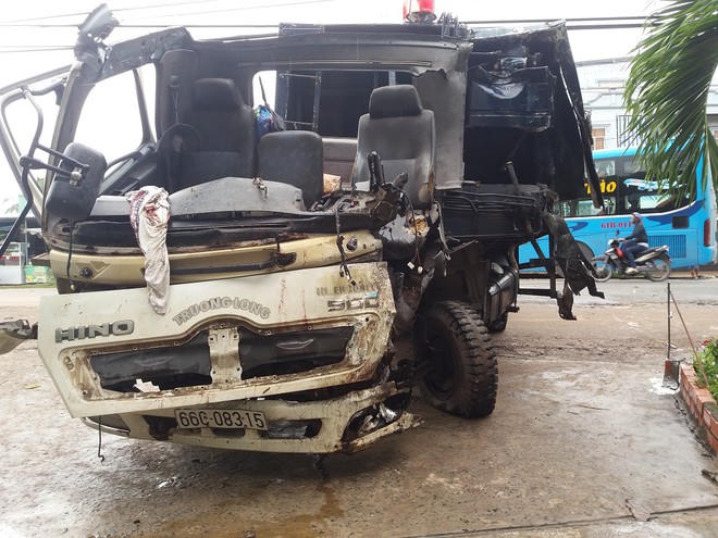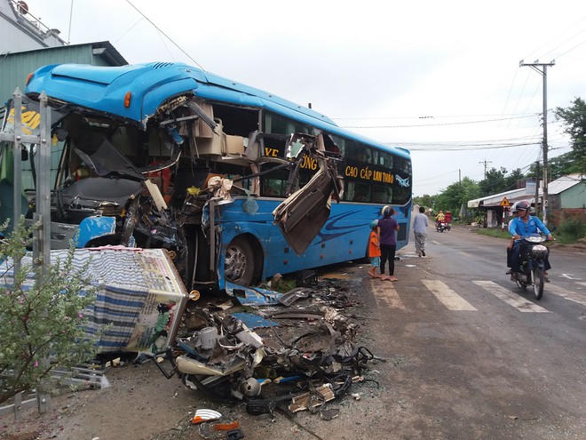 Hậu quả, xe khách bị hỏng phần hông, phần đầu xe tải bị biến dạng rụng luôn xuống đường. Tài xế xe tải cùng 3 người của xe khách bị thương phải nhập viện cấp cứu.