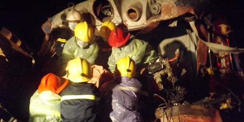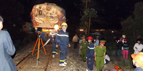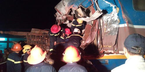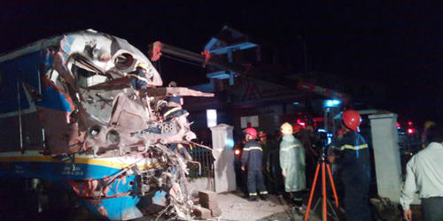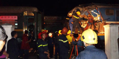 Đến 0h15’ ngày 11/3, các lực lượng chức năng vẫn đang cố gắng khoan cắt đầu tàu để đưa thi thể lái tàu Lê Minh Phú ra khỏi khoang lái. Vụ tai nạn nghiêm trọng khiến đoạn QL1A đi qua địa bàn trên bị kẹt xe nhiều giờ liền.