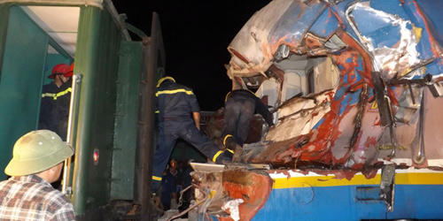 Tại hiện trường, phần đầu tàu bị đứt rời trôi về phía trước cách nơi xảy ra tai nạn gần 2km. Cabin tàu bị bẹp dúm khiến lái tàu tử vong tại chỗ, phụ tàu may mắn thoát chết.
