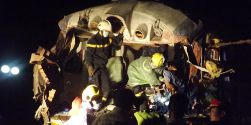 (PLO) - Khoảng 21h45’ ngày 10/3, một vụ tai đường sắt nghiêm trọng xảy ra tại thôn Xuân Lâm (huyện Hải Lăng, tỉnh Quảng Trị) khiến ít nhất một người chết, hàng chục người bị thương và đoàn tàu bị hư hỏng nặng.
