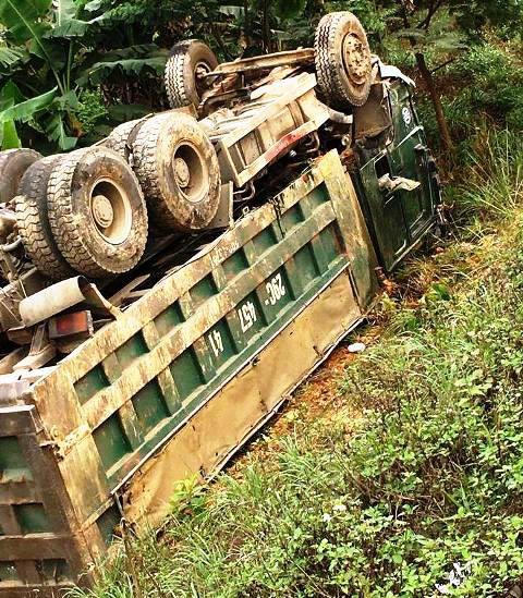 Cú va chạm cực mạnh khiến chiếc xe con gần như nát vụn, tài xế được xác định tên Tr. (ngụ TP Hòa Bình, tỉnh Hòa Bình) tử vong ngay trong xe. Còn chiếc xe ben tiếp tục lao sang bên đường tông gãy nhiều mét ta-luy rồi lao ra khỏi đường, lật ngửa.