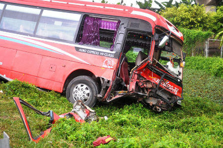 Sau va chạm, chiếc xe tải bay về phía trước khoảng 20 mét, chiếc xe khách bị mất lái lao qua chiều ngược lại, chúi đầu xuống vực. Tại nạn làm phụ xe khách kẹt cứng trên cabin, chết tại chỗ. Hơn 40 người ngồi trên xe khách hoảng loạn. Riêng tài xế và phụ xe tải chỉ bị thương nhẹ.