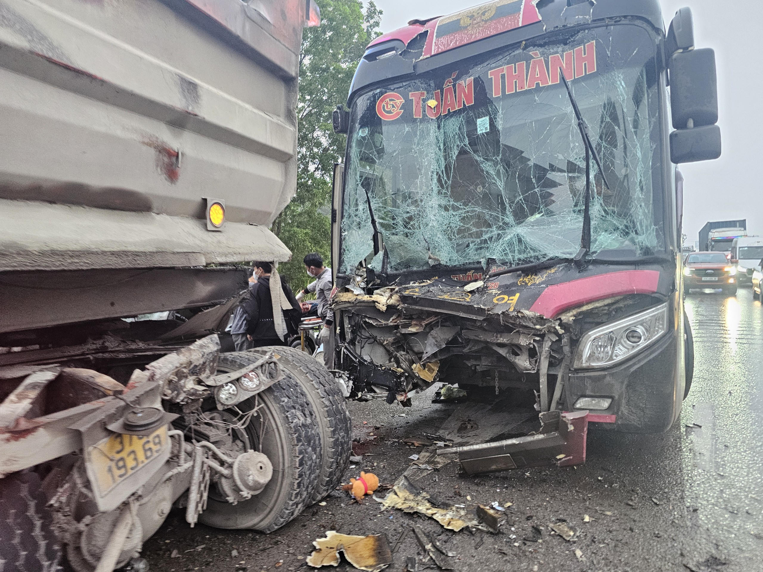 Cùng lúc đó, ô tô khách BKS 36B 02861 của nhà xe Tuấn Thành do bất ngờ, không xử lý kịp đã đâm vào đuôi xe đầu kéo.