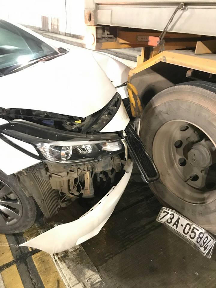 Khi đến Km số 6, bất ngờ đâm vào đuôi ô tô 4 chỗ 73A - 058.94 do tài xế Mai Xuân Hiền (SN 1980, ngụ Bố Trạch, Quảng Bình) điều khiển, khiến chiếc ô tô này tiếp tục tông vào đuôi xe đầu kéo BKS 77C - 091.46 do tài xế Mai Hoài Ngôn (SN 1982, ngụ huyện Phù Mỹ, Bình Định) điều khiển cùng chiều.
