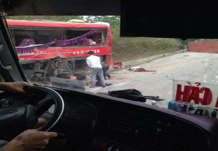 Xe khách 47 chỗ BKS 14N-9315 do lái xe Trần Văn Hùng (SN: 1980, trú tại xã Cộng Hòa, huyện Chí Linh, tỉnh Hải Dương) điều khiển chạy hướng Móng Cái - Hạ Long, trên xe có khoảng 20 người (cả lái và phụ xe) va chạm với xe sơmi rơmoóc (BKS 15C - 08907, 15R-03619) chạy hướng chiểu ngược lại.