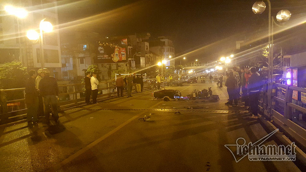Tai nạn giữa 2 xe máy trên cầu vượt Thái Hà - Chùa Bộc lúc nửa đêm khiến một người tử vong, 2 người bị thương nặng.