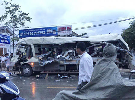 Cú đâm mạnh khiến ba người trên xe khách tử vong, nhiều người khác bị thương được đưa đi cấp cứu sau đó, chiếc xe khách bị hư hỏng hoàn toàn.