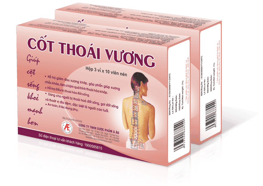 Sản phẩm CỐT THOÁI VƯƠNG cũng được tiến hành nghiên cứu lâm sàng tại các bệnh viện lớn: BV Trung ương Quân đội 108 và BV Đại học Y Hà Nội năm 2010, BV Quân y 103 năm 2011 trên các trường hợp bị thoái hoá cột sống, thoát vị đĩa đệm, đau lưng, đau thần kinh tọa. Kết quả cho thấy, nhóm sử dụng Cốt Thoái Vương có tác dụng cải thiện độ giãn và độ linh động cột sống (theo chỉ số Schober) sau điều trị cao hơn nhóm đối chứng. Đặc biệt, tỷ lệ bệnh nhân đạt kết quả tốt và rất tốt ở nhóm dùng Cốt Thoái Vương lên tới gần 90%.Nếu bạn cũng đang bị thoái hóa cột sống mà chưa biết phải làm thế nào để cải thiện? Hãy gọi đến số tổng đài 18006104, kết bạn Zalo/Viber số 0902.207.112 để chuyên gia tư vấn giúp bạn. Đặc biệt, khi mua 6 hộp Cốt Thoái Vương, quý khách sẽ được tặng 1 hộp thông qua tích điểm, tương đương tiết kiệm 160.000 đồng. Quý khách xin lưu ý là chỉ mua hàng khi còn đủ tem. Hơn thế nữa, nhằm khẳng định chất lượng sản phẩm, CỐT THOÁI VƯƠNG tự tin cam kết hoàn lại 100% tiền nếu KHÁCH HÀNG sử dụng không hiệu quả. Đừng bỏ lỡ! Hãy nhanh tay gọi ngay quý vị nhé!