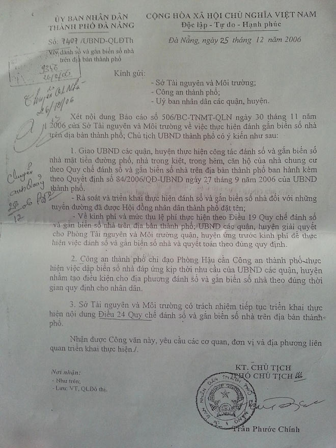 Để rõ hơn về “hiện tượng” lạ trong đánh số nhà ở Đà Nẵng, PV tìm gặp Phó trưởng phòng Quản lý nhà, sở Xây dựng TP. Đà Nẵng, ông Trần Văn Quảng thừa nhận, lâu nay, không một tuyến đường nào ở Đà Nẵng có số nhà thứ 13. Ông Quảng thông tin, việc cấp số nhà hiện nay ở Đà Nẵng thực hiện theo quy định của Bộ Xây dựng và Quyết định 84/2006/QĐ-UBND ngày 27/9/2006 của UBND TP. Đà Nẵng về Ban hành quy chế đánh số và gắn biển số nhà trên địa bàn thành phố Đà Nẵng.