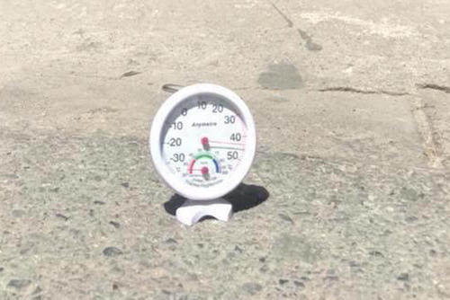 Người dùng đo nhiệt độ theo cách thông thường, đặt trực tiếp trên nền bê tông, giữa trời nắng. |