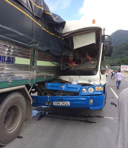 Theo Công an H.Đạ Huoai cú “đỡ” kịp thời khiến đuôi xe tải bị móp méo, đầu xe khách bị hư hỏng nặng, nhưng chỉ có chủ xe du lịch bị thương nhẹ. Toàn bộ hành khách trên xe và cả tài xế xe du lịch đều an toàn.