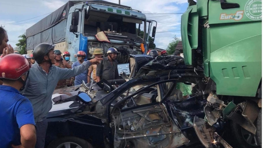 Khi anh Xôn phát hiện sự việc, đã đạp phanh nhưng do quán tính nên xe không thể dừng lại mà tông vào thân xe bên phải của xe ô tô anh Sinh. Hậu quả, xe ô tô của anh Sinh bị tông chèn ép giữa hai xe ô tô tải BKS 81H-027.60 và BKS 47C-263.06.
