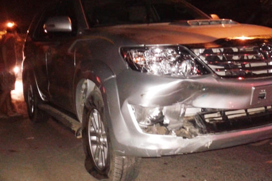 Khoảng gần 21h30 tối ngày 23/4, chiếc xe con 7 chỗ lạng lách, đánh võng, trên đường Minh Khai, bất ngờ lách sang đường ngược chiều, đâm đối đầu vào xe máy do một đôi vợ chồng đang điều khiển. Cú va chạm khiến người chồng bị bất tỉnh, ngay sau đó được mọi người đưa đi cấp cứu. Chiếc xe gây tai nạn không chịu dừng lại mà tiếp tục lao nhanh hướng về Bến xe.