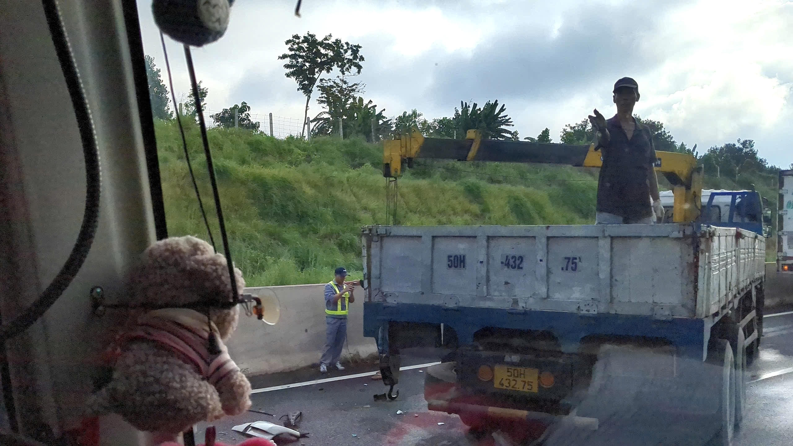 Tai nạn xảy ra khiến cho đường cao tốc Phan Thiết - Dầu Giây bị kẹt xe cục bộ.