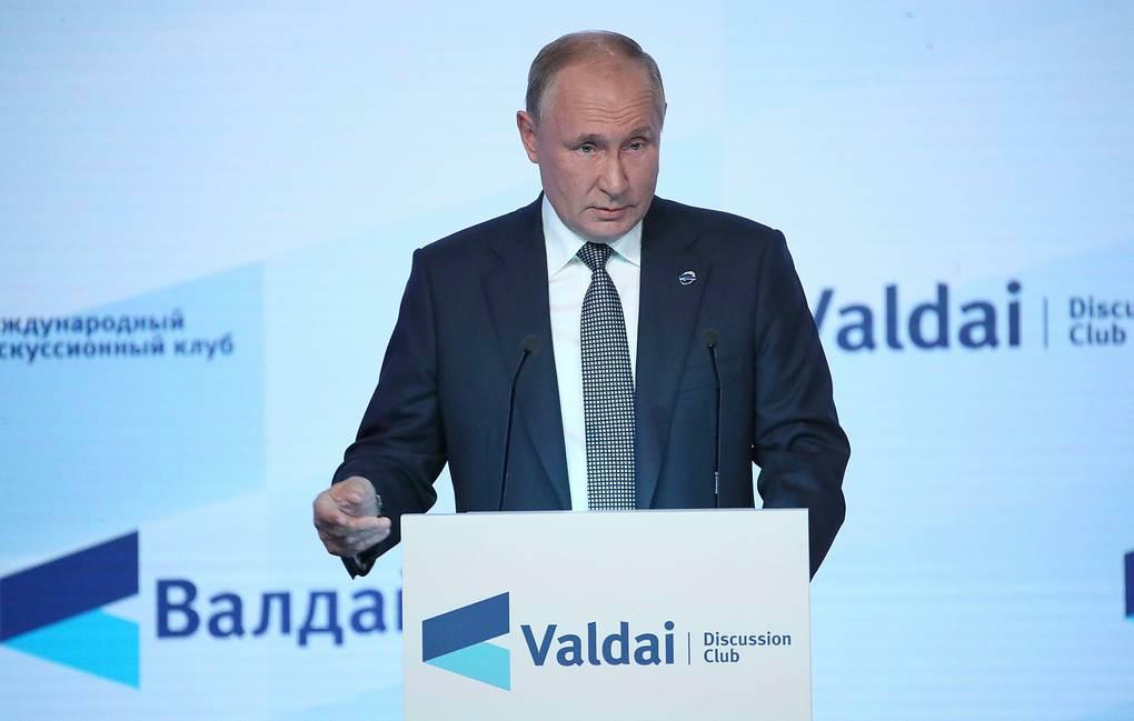 Tổng thống Vladimir Putin phát biểu tại cuộc họp toàn thể của Câu lạc bộ Thảo luận Valdai quốc tế hôm 21/10/2021. Ảnh: TASS |