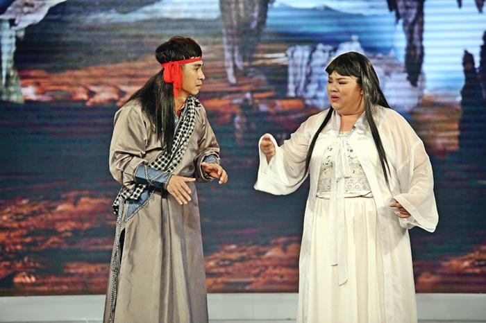 Với Châu Gia Kiệt - Tuyền Mập, tiểu phẩm “Thần điêu ngoại truyện” được lấy cảm hứng từ bộ phim cổ trang “Thần điêu đại hiệp” chuyển thể từ tiểu thuyết kiếm hiệp của Kim Dung. Tuyền Mập gây bất ngờ với hình ảnh Tiểu Long Nữ phiên bản “nặng cân”, Châu Gia Kiệt cũng hóa thân thành công thành chàng Dương Quá hiền lành.