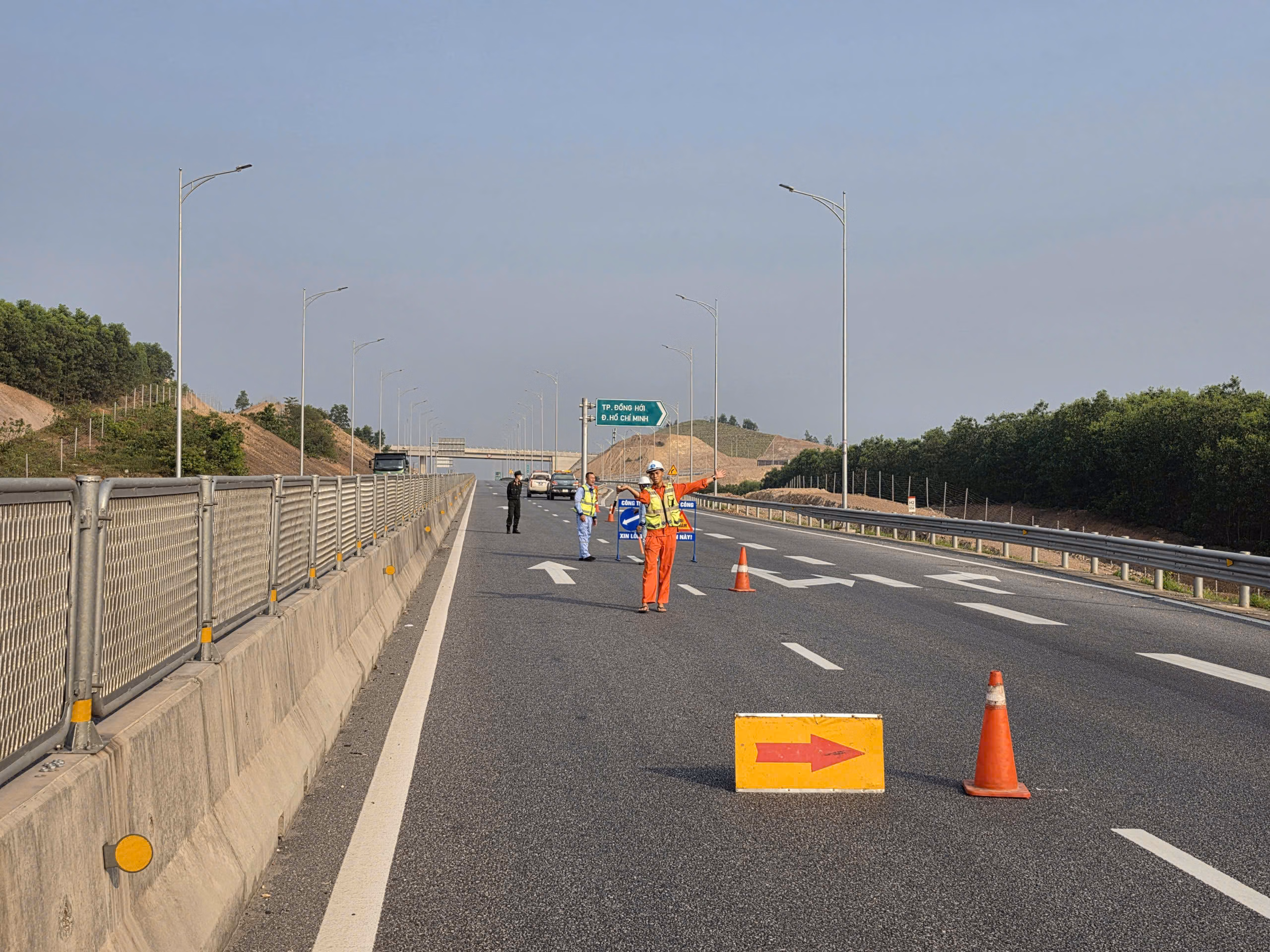 Ngày 22/4: Đóng đoạn từ nút giao Việt Trung (km643+400) đến nút giao Nhật Lệ (km653+850).