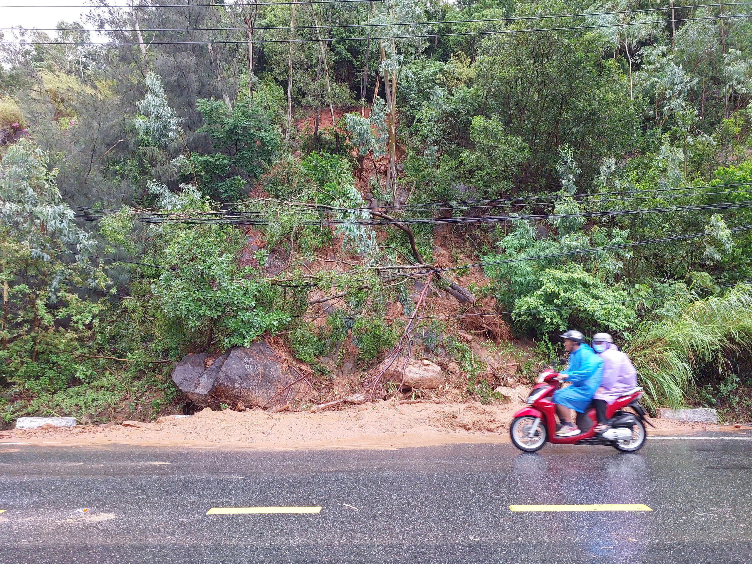 Theo ghi nhận của PV Báo Pháp luật Việt Nam, tuyến đường Hoàng Sa dẫn lên bán đảo Sơn Trà (phường Thọ Quang, quận Sơn Trà) xuất hiện khoảng 10 điểm sạt lở lớn nhỏ.