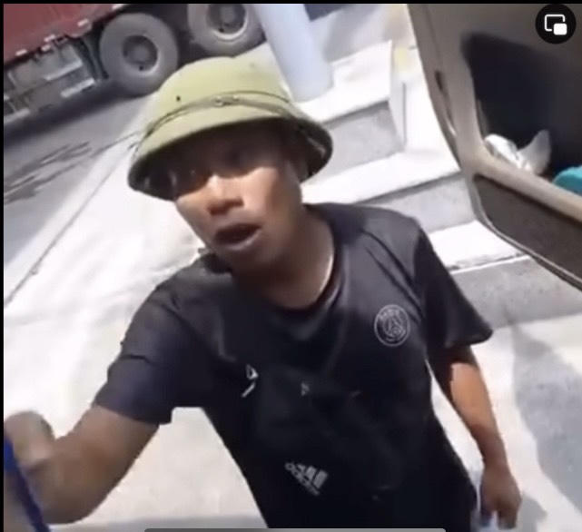 Hình ảnh đối tượng Cường "Thu phế" tài xế tại cửa khẩu Kim Thành. |