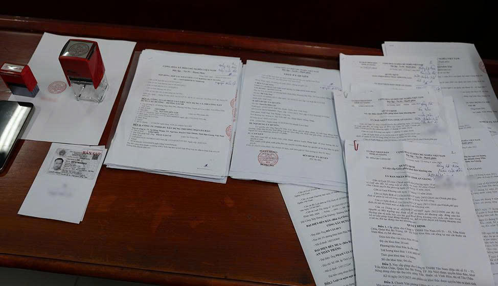Tại cơ quan Công an, bước đầu L. khai nhận: Do làm ăn túng thiếu, nợ nần, không có tiền trả nợ nên L. nảy sinh ý định làm giả văn bản của UBND tỉnh An Giang về việc cấp phép khai thác các mỏ cát trên địa bàn tỉnh An Giang, nhằm lừa đảo chiếm đoạt tài sản người khác.