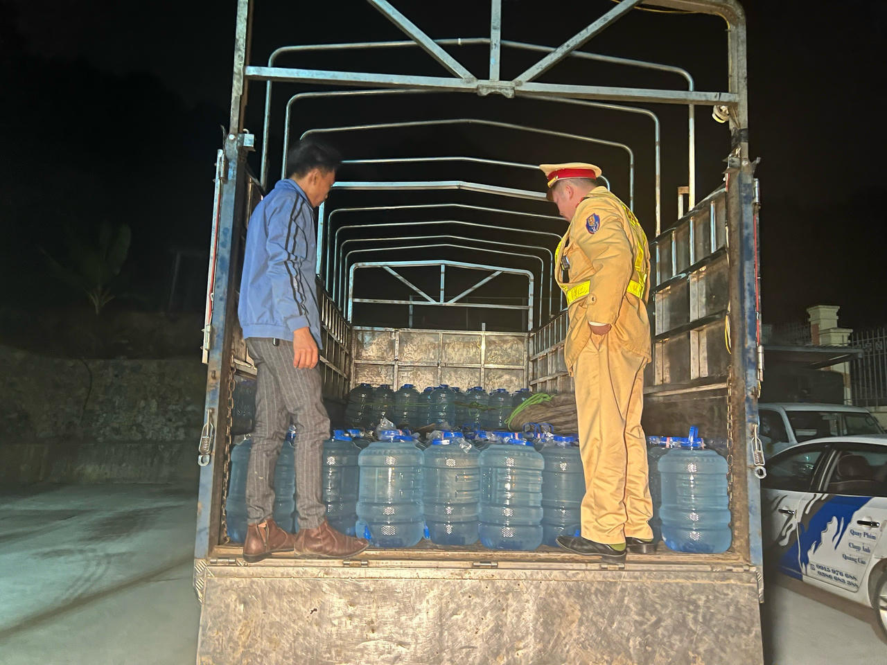 Tạm giữ xe tải vận chuyển hơn 3.000 lít rượu không rõ nguồn gốc xuất xứ