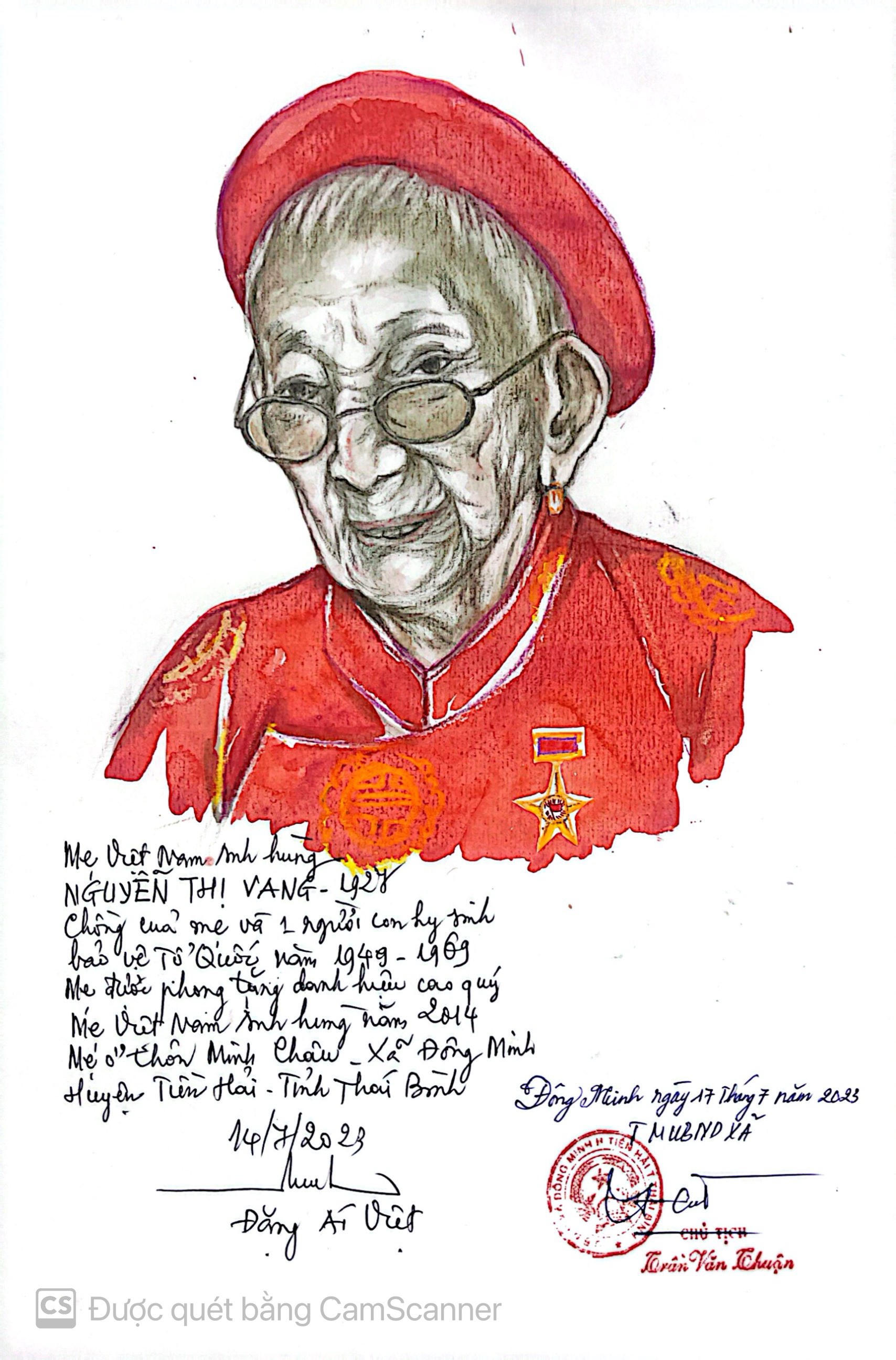 Bức ký họa Mẹ Việt Nam anh hùng Nguyễn Thị Vang tỉnh Thái Bình là một trong hơn 3000 bức ký họa nữ họa sĩ đã thực hiện trong hành trình dài hơn một thập kỷ đi và vẽ của mình. Ảnh BTPNVN |