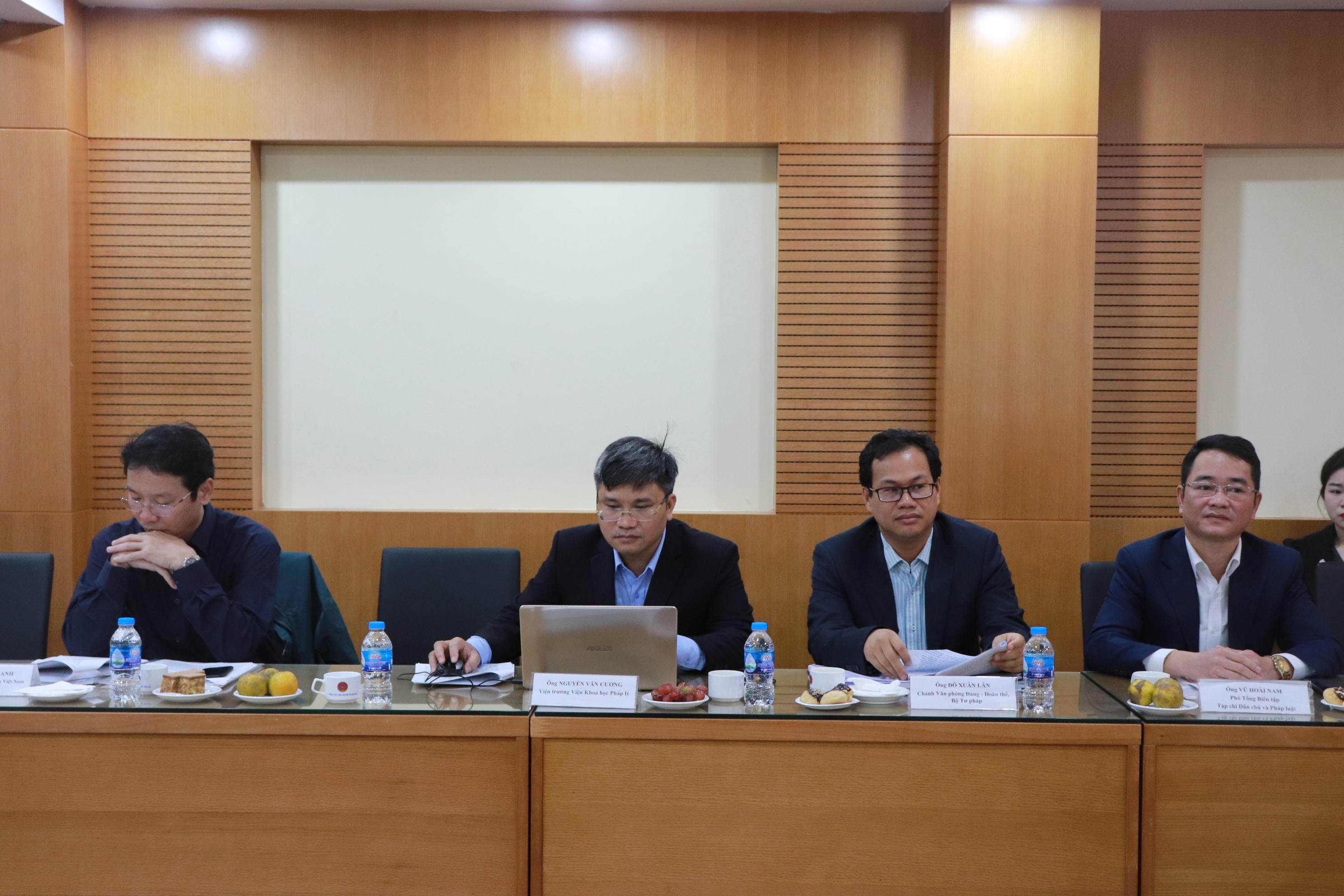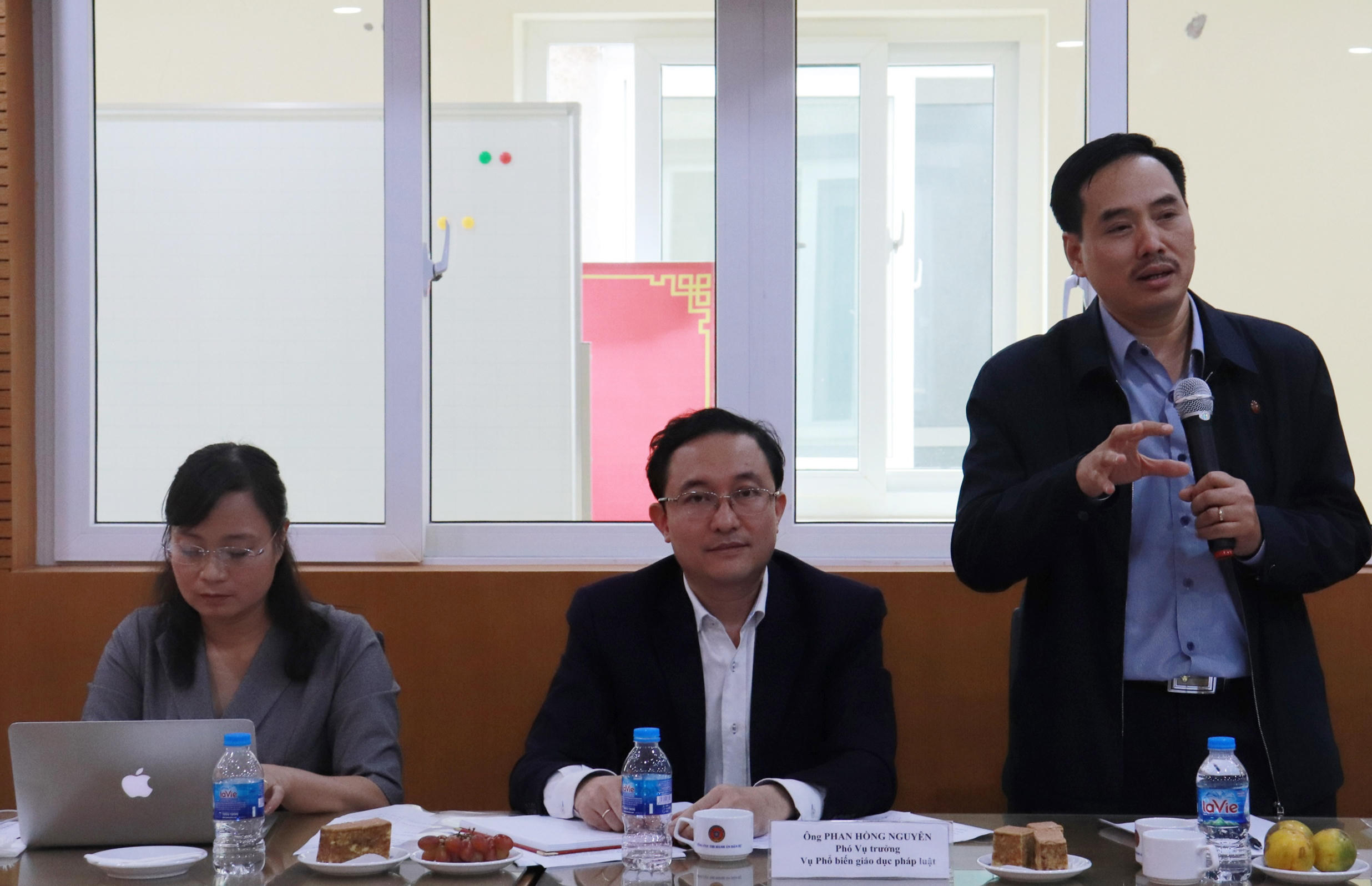 Ông Đỗ Xuân Lân, Chánh Văn phòng Đảng - Đoàn Thể, Bộ Tư pháp; PGS. TS Phan Hữu Tích, Học viện Chính trị Quốc gia Hồ Chí Minh; Đại sứ Trần Đức Mậu, Nguyên Vụ trưởng Vụ chính sách đối ngoại, Bộ Ngoại giao; Ông Vũ Hoài Nam, Phó Tổng Biên tập Tạp chí Dân chủ và Pháp luật; Ông Phan Hồng Nguyên, Phó Vụ trưởng Vụ Phổ biến giáo dục pháp luật; Luật sư Nguyễn Mạnh Thuật, Giám đốc Công ty Luật hợp danh Đông Nam Á.