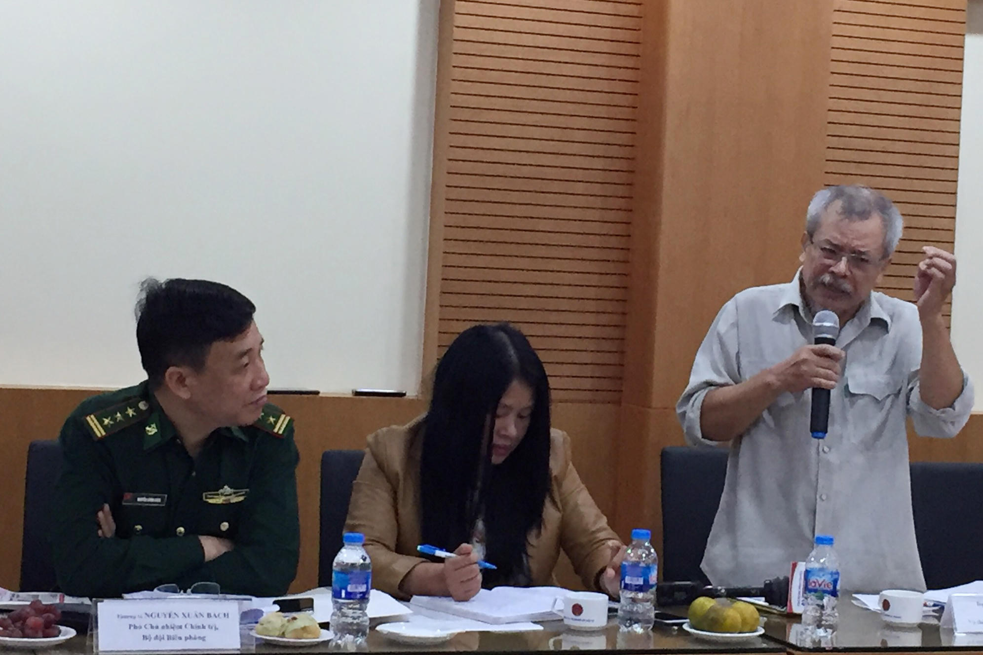 | Đại sứ Trần Đức Mậu, Nguyên Vụ trưởng Vụ chính sách đối ngoại, Bộ Ngoại giao nêu ý kiến tại Tọa đàm. |