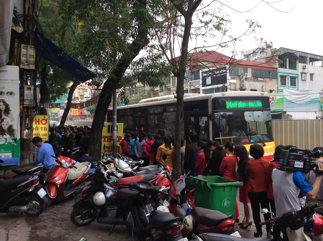 Từ 7 giờ sáng, tại cửa hàng vàng của Công ty Bảo Tín Minh Châu (BTMC) trên phố Cầu Giấy (Hà Nội), người dân đã xếp hàng dài chờ mua vàng. Gần 8h, Công ty mới mở cửa, nhưng đã có hàng trăm khách đứng chờ đợi. BTMC phải tổ chức phát số cho người xếp hàng, nhưng vẫn không làm giảm bớt "sức nóng" của một lượng khách quá lớn.