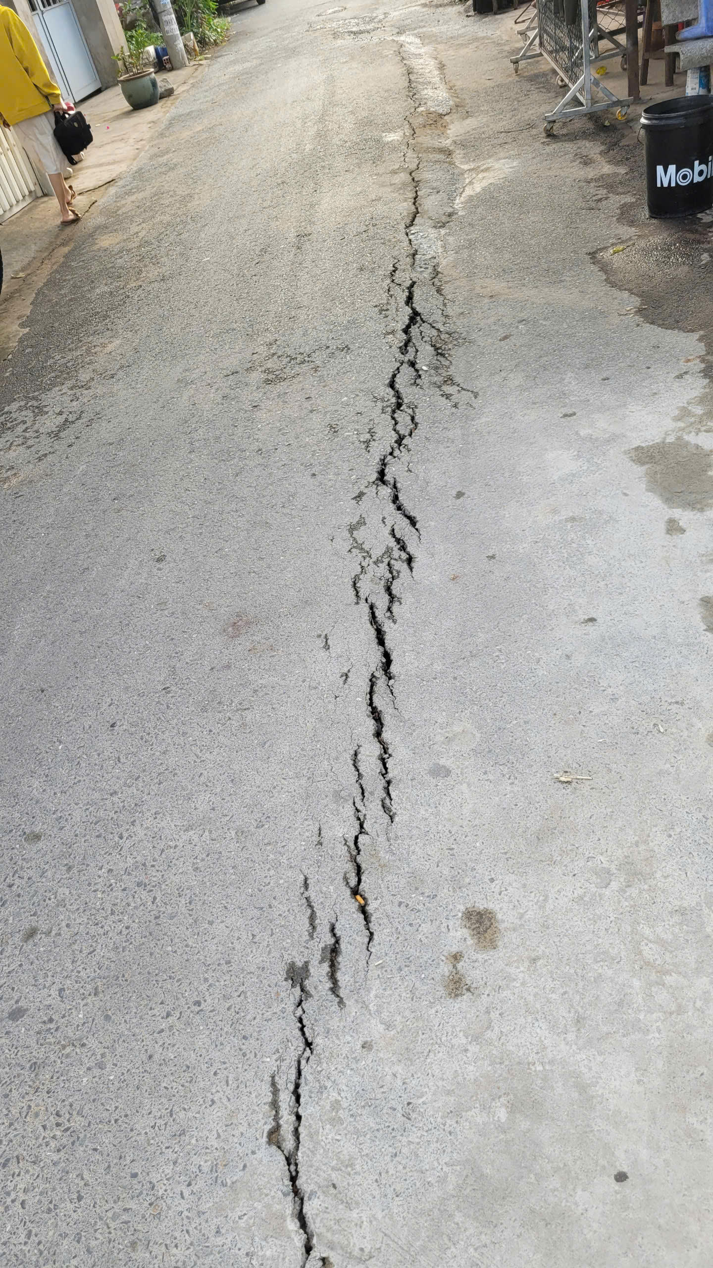 Tuy nhiên, trên thực tế, sau khi đóng cọc thì một số hộ dân phản ánh về tình trạng nhà bị nứt, sụt lún do ảnh hưởng bởi công trình. Hiện trạng địa chất nứt gãy trên đường cũng dễ dàng nhìn thấy.