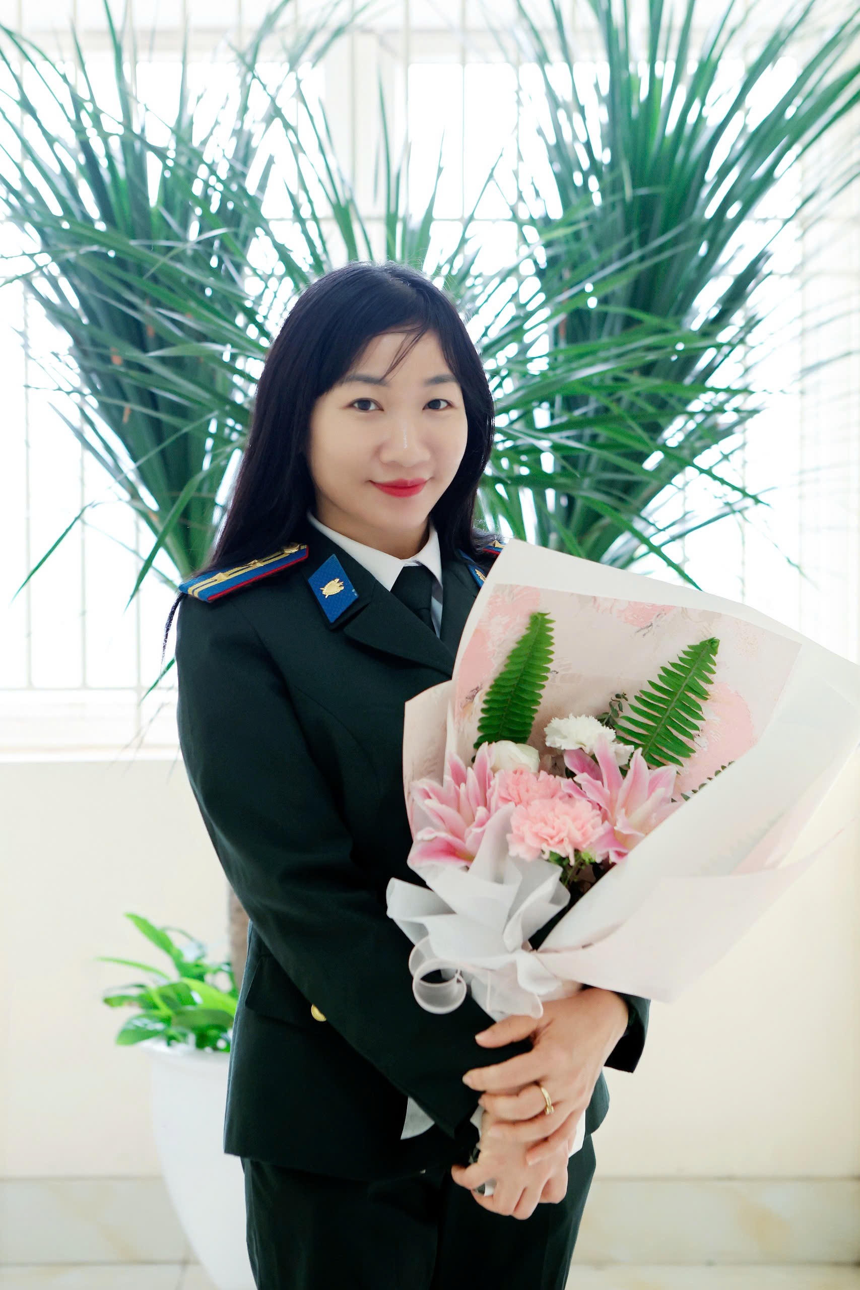 Chấp hành viên Đinh Thị Hồng Phượng tự hào được khoác trên mình bộ đồng phục ngành Thi hành án dân sự. (ảnh: NVCC) |
