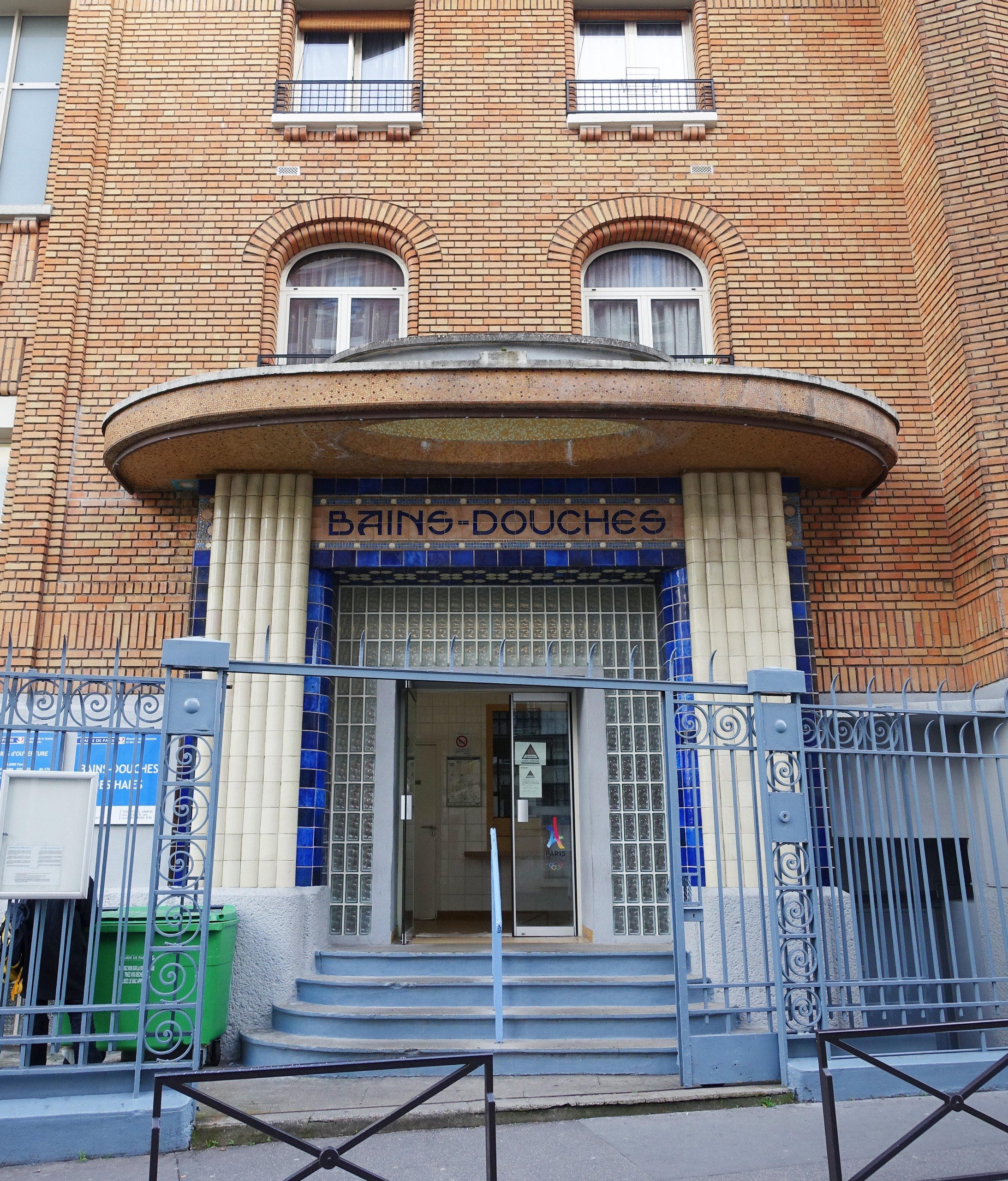 Phần lớn các nhà tắm công cộng đều nằm ở phía tây Thủ đô Paris. Quận 19 và 20 có nhiều nhà tắm nhất, mỗi quận có tới 3 nhà tắm. Một trong những nhà tắm công cộng đông khách nhất Paris là “B.D des Haies”, nằm ở phố Les Haies, quận 20, phía tây Paris. Được xây vào năm 1928, bên ngoài lát gạch đỏ, “B.D des Haies” được xếp hạng “Công trình lịch sử” từ năm 2005.