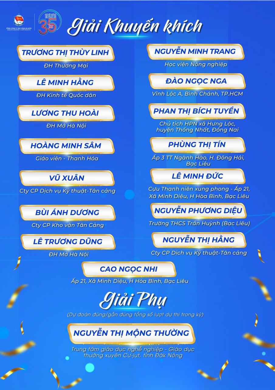 Các thí sinh đạt giải dự đoán gần chính xác nhất và giải khuyến khích |