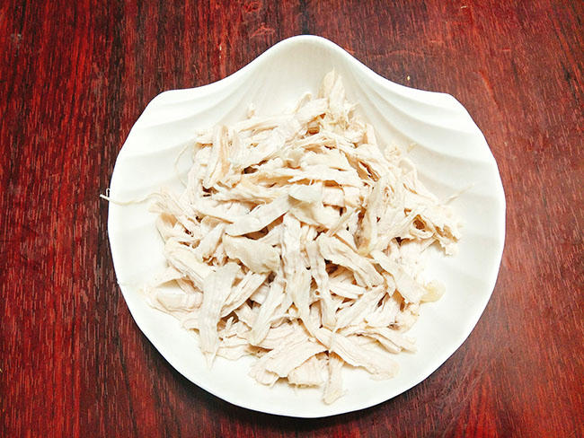 Bước 2: Xé thịt gà thành những sợi vừa nhỏ.