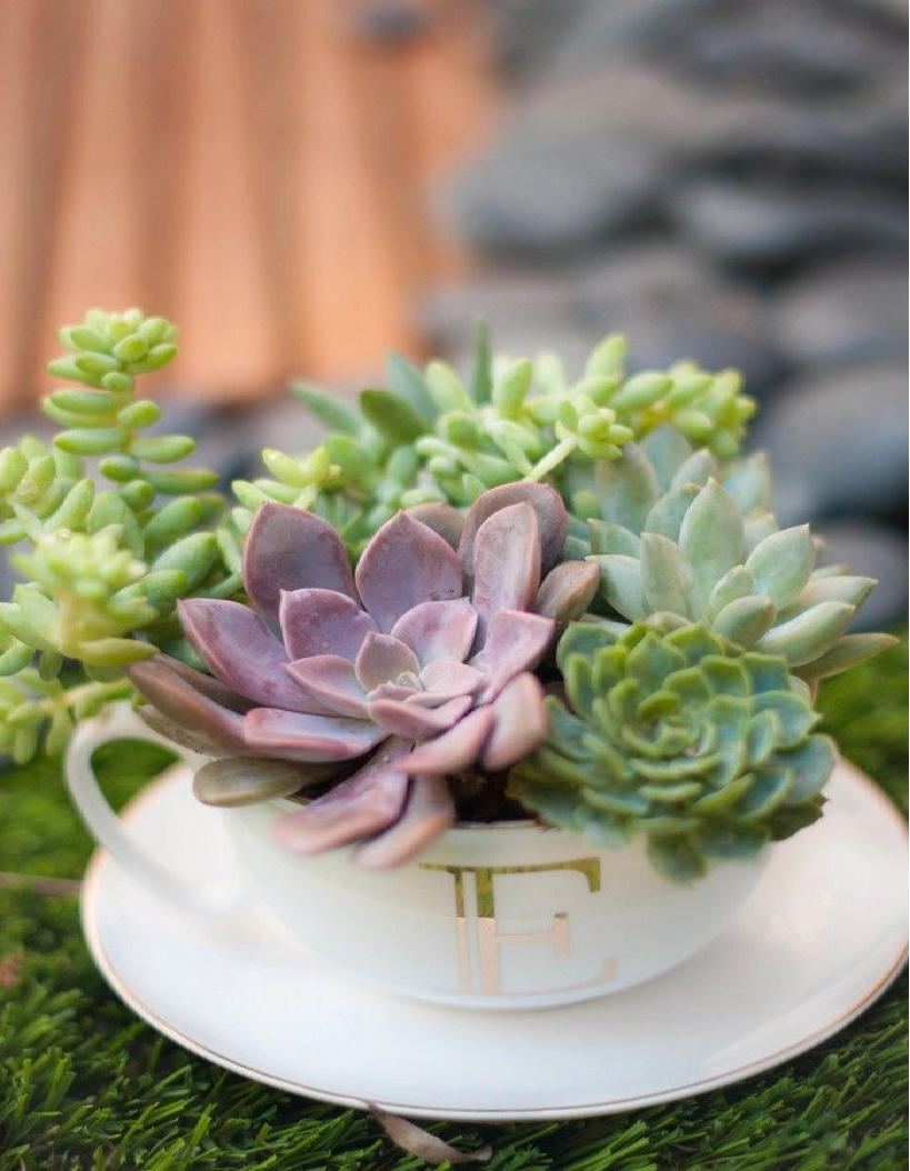 ... hoặc những cây lớn hơn nếu chiếc tách của bạn đủ lớn. Bạn cũng có thể thêm một vài viên sỏi hoặc đá để tăng thêm nét đẹp cho chậu cây này. |