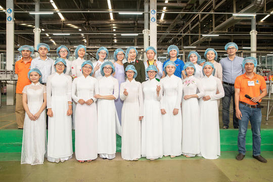 Ban tổ chức và Top 10 Quả cầu Vvng cùng 20 nữ sinh viên khoa học công nghệ tiêu biểu tham quan nhà máy Tân Hiệp Phát và giao lưu với cán bộ, công nhân viên tại đây